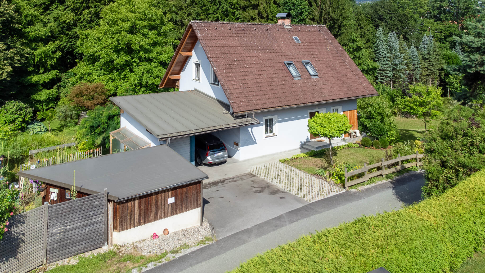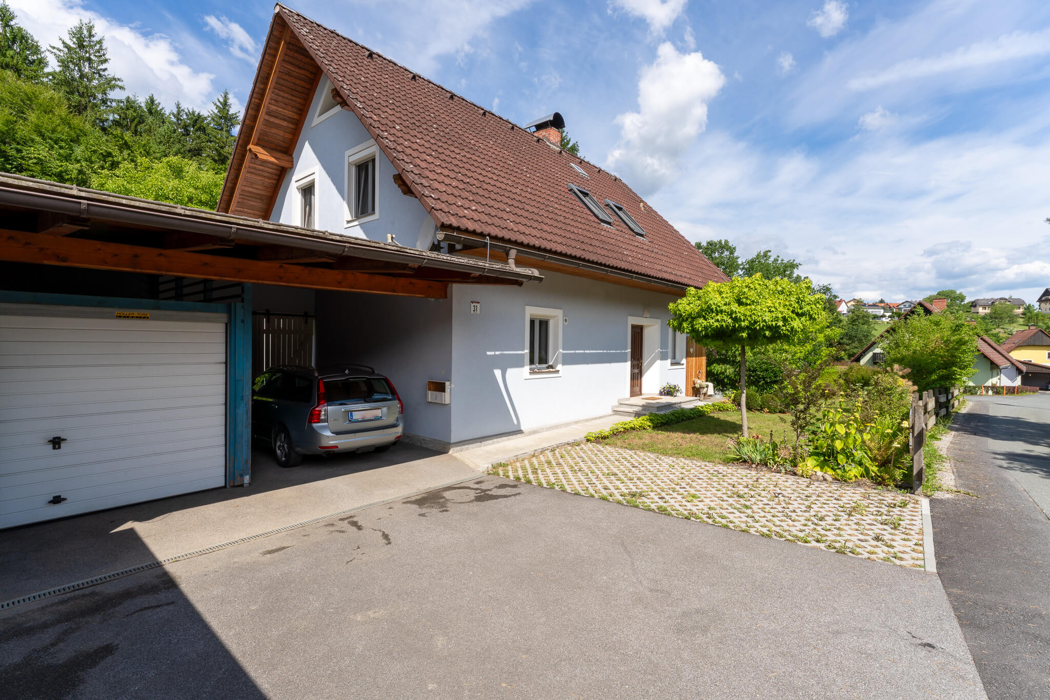 Zur Ausstattung zählen Einbauküche, Teilmöblierung, Garage, Carport, Wintergarten und mehrere Freiflächen. Beheizt wird das Haus über Kachelofen und Fernwärme. Kindergarten, Schule, Nahversorger und Freizeitmöglichkeiten sind in wenigen Minuten erreichbar.
