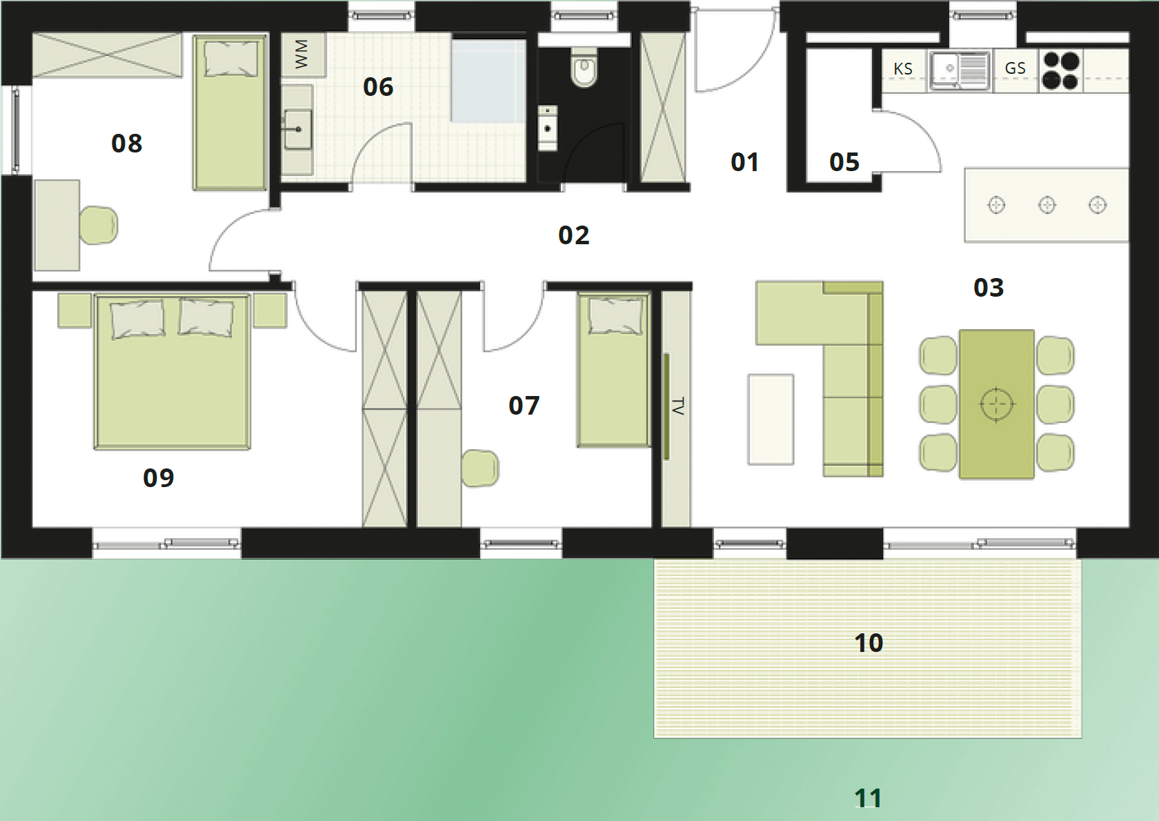 Neubau in Ziegelmassivbauweise mit hellen, freundlichen Räumlichkeiten und gut durchdachtem Grundriss.